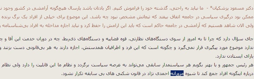 اگر علی مطهری خبر ندارد و نمیداند که بحث ریزشها و رویشها اصرار عده ای!!! نیست بلکه از فرمایشات و گفتمان های خاص انتشار یافته از سوی ولایت امر است (که از سال 78 تاکنون در مقاطع مختلف بیان فرموده اند) باید گفت : که دوستان ارزشی مجلس، مارادوناهای عرصه سیاست کشور را رها کنند و علی مطهری را مهار کنند.